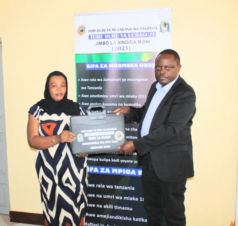 Msimamizi wa Uchaguzi Manispaa ya Singida, Bw. Aminiel Mfinanga, leo Agosti 23, 2025 amekabidhi rasmi fomu ya kugombea Ubunge kwa Jimbo la Singida Mjini kwa Bi.Angela Makarios Kayombo mgombea ubunge kupitia tiketi ya Chama cha United Democratic Party (UDP)