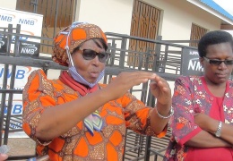 • MKUU wa Mkoa wa Singida,Dkt Rehema Nchimbi (aliyefunga kilemba kichwani) akizungumza kabla ya kukabidhi msaada wa vitanda na madawati kwa uongozi wa shule ya sekondari ya New Kiomboi.