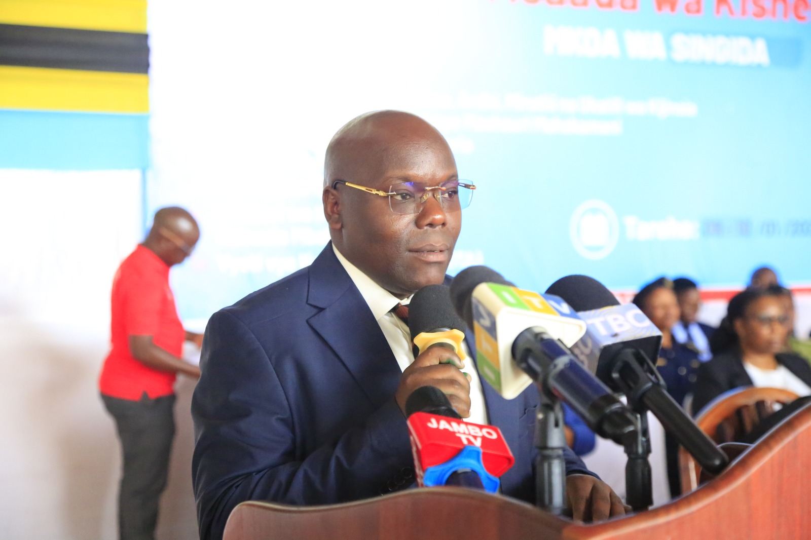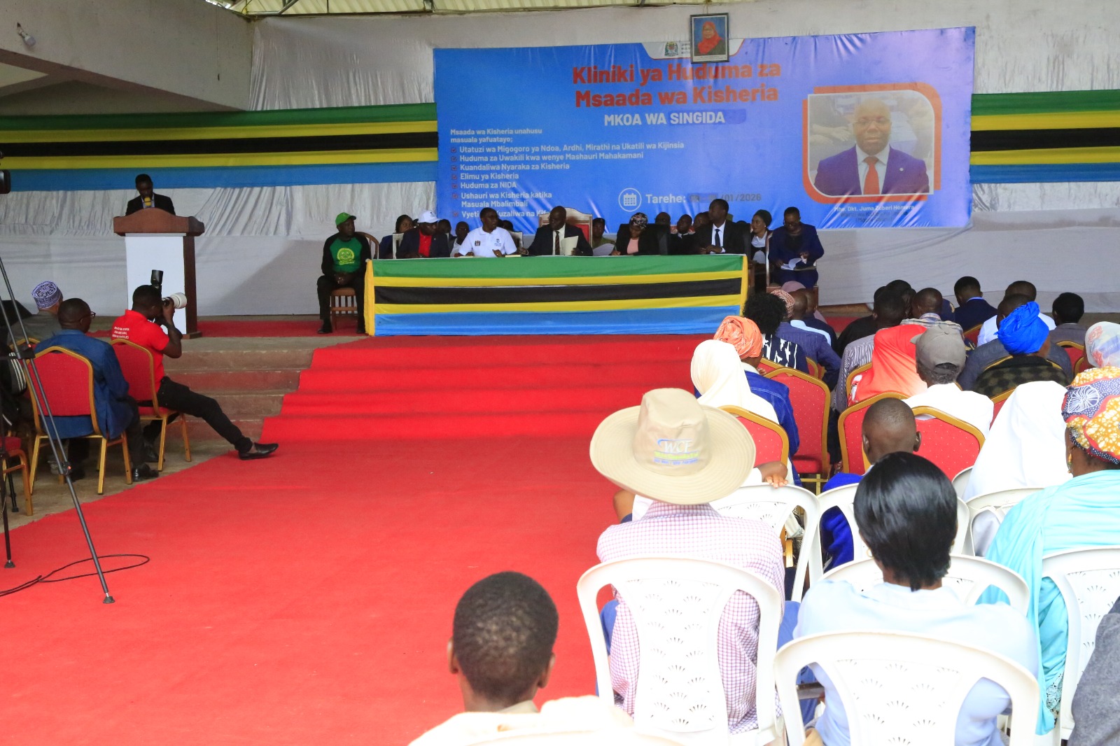 • Waziri wa Katiba na Sheria, Mhe. Dkt Juma Homera akikagua mabanda ya watoa huduma za kisheria mara baada ya kuwasili katika ukumbi wa RC-Missi Mabula ambapo anatarajia kuzindua kliniki ya siku mbili ya Msaada wa Kisheria katika Mkoa wa Singida leo Januari 9, 2026 katika Halmashuri ya Manispaa ya Singida.